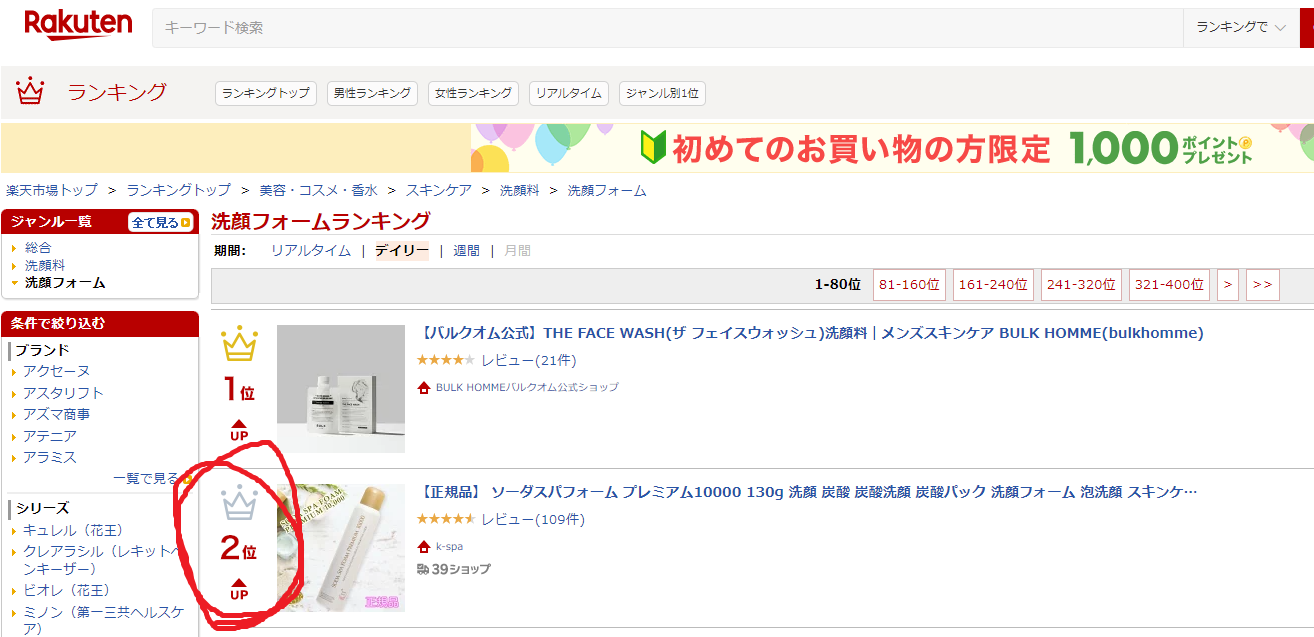 そして楽天ランキングでは「洗顔フォーム」第2位